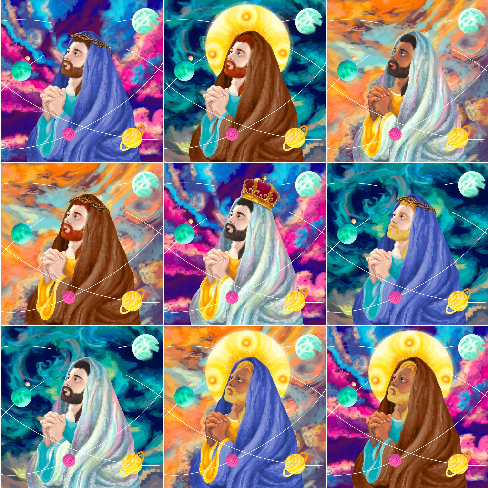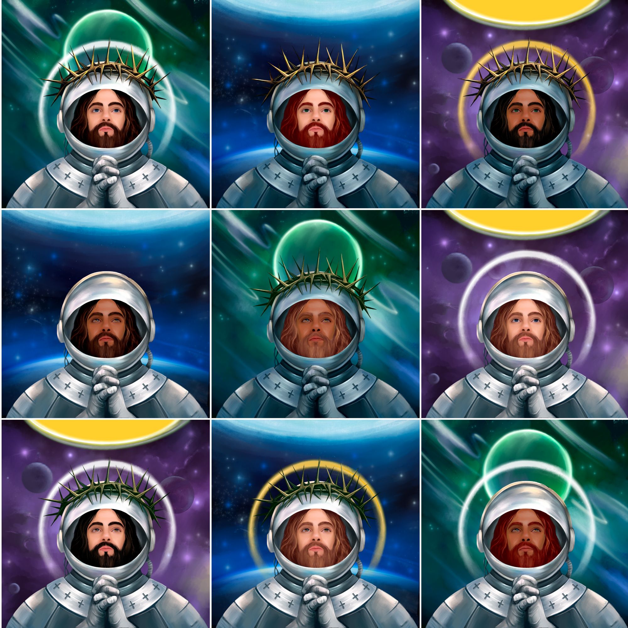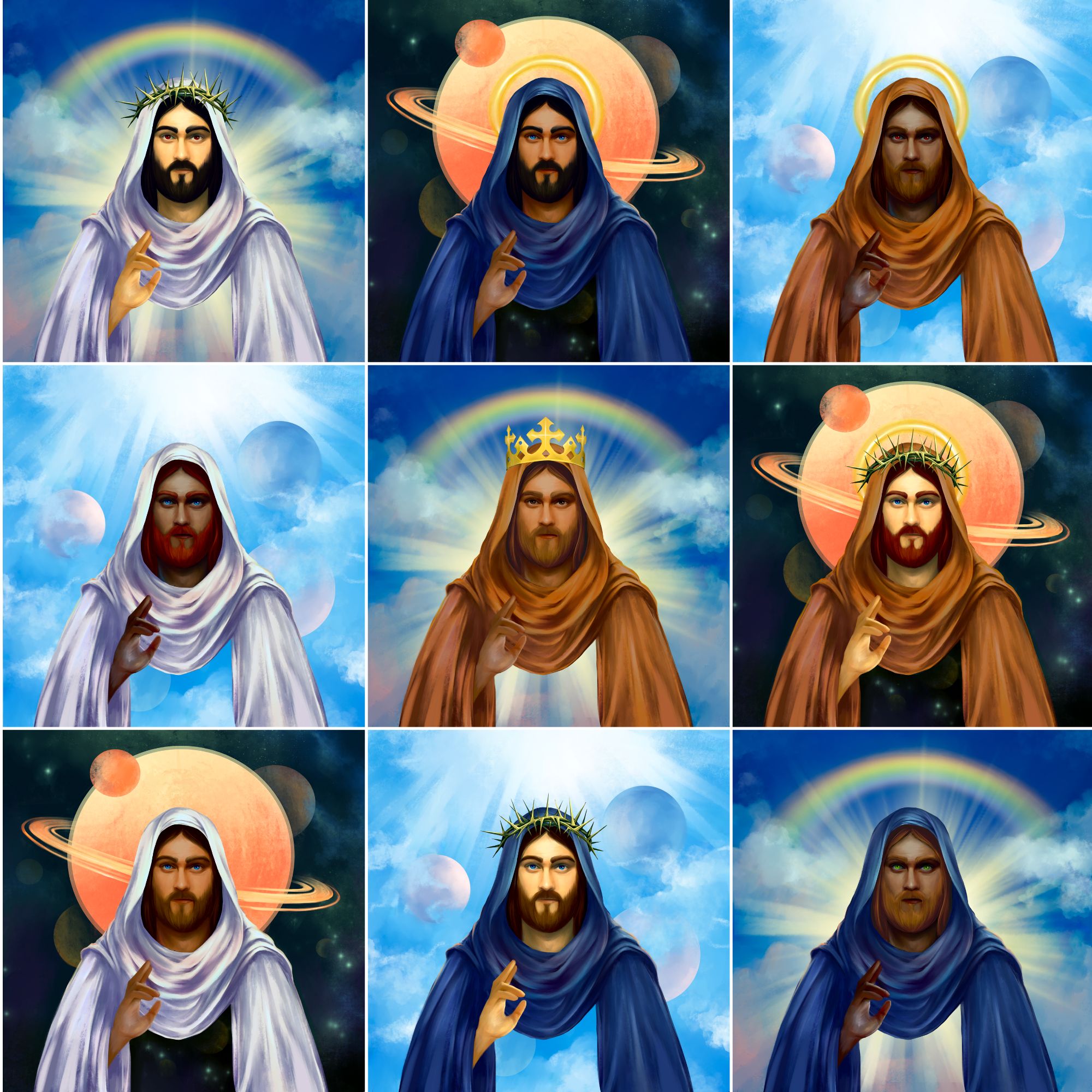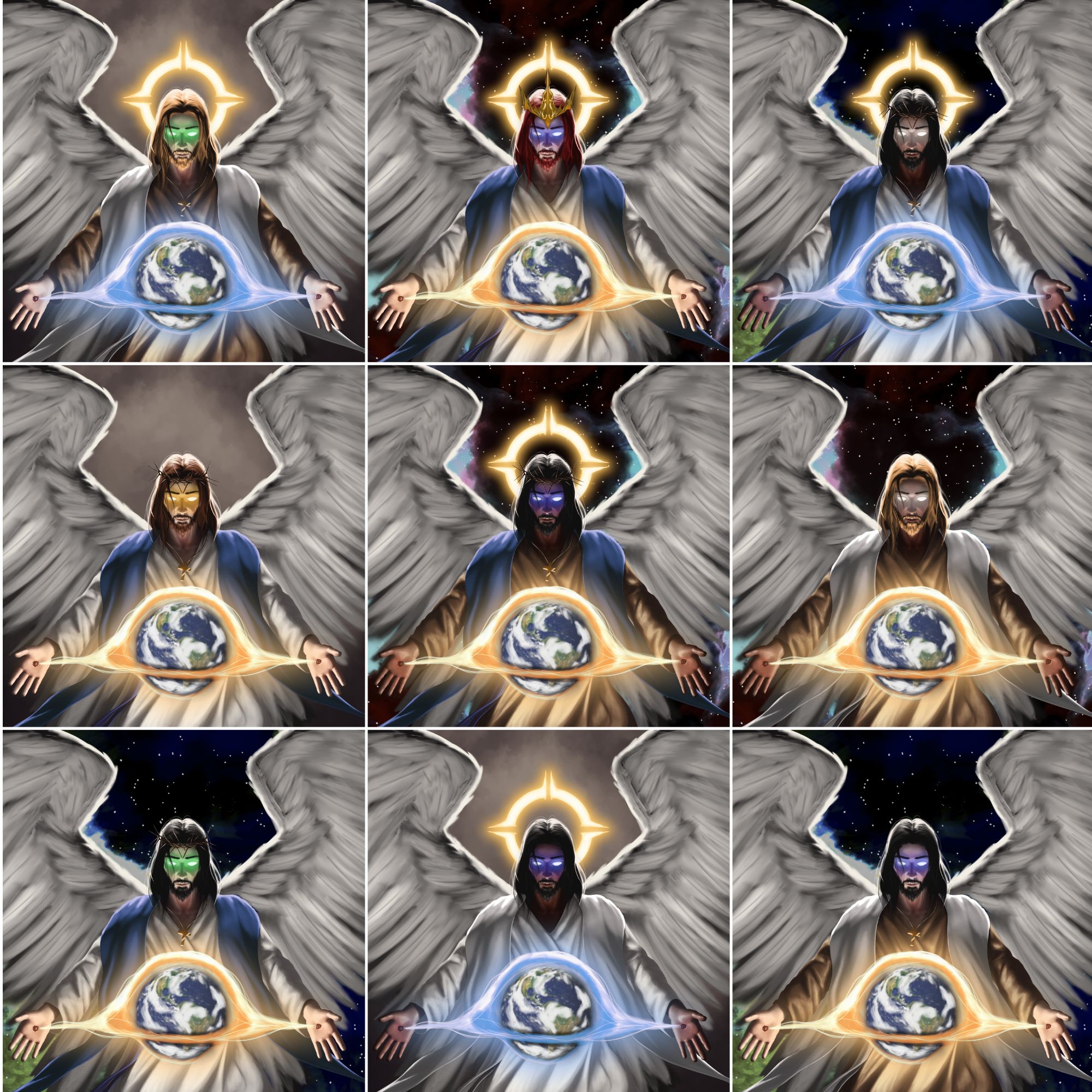 Created in a range of styles by an exciting collective of acclaimed Christian artists around the world, each Glory of Futuristic Christ painting will feature 77 unique variations, for a total of 7,777 Futuristic Christ NFTs that make up our highly exclusive artwork collection!
