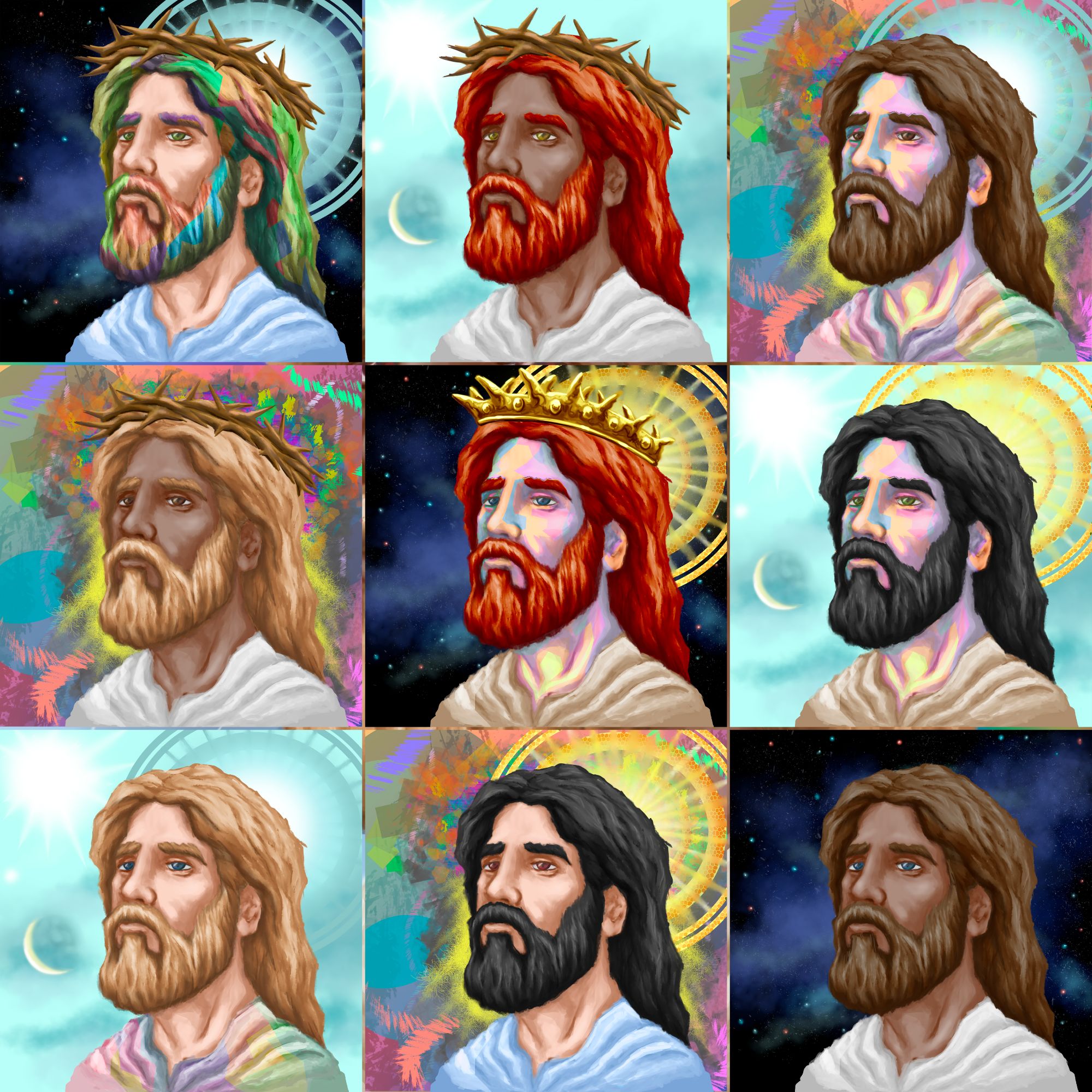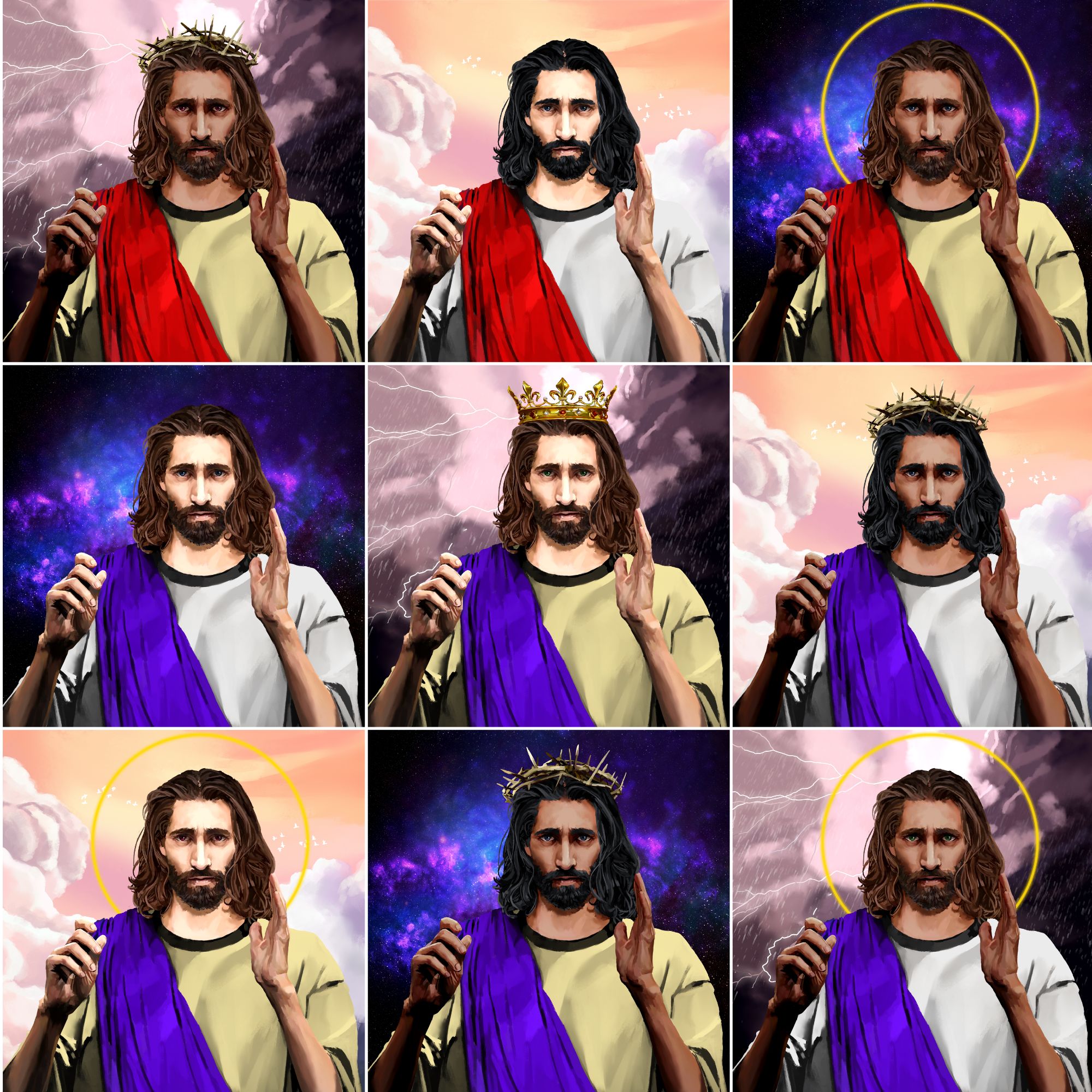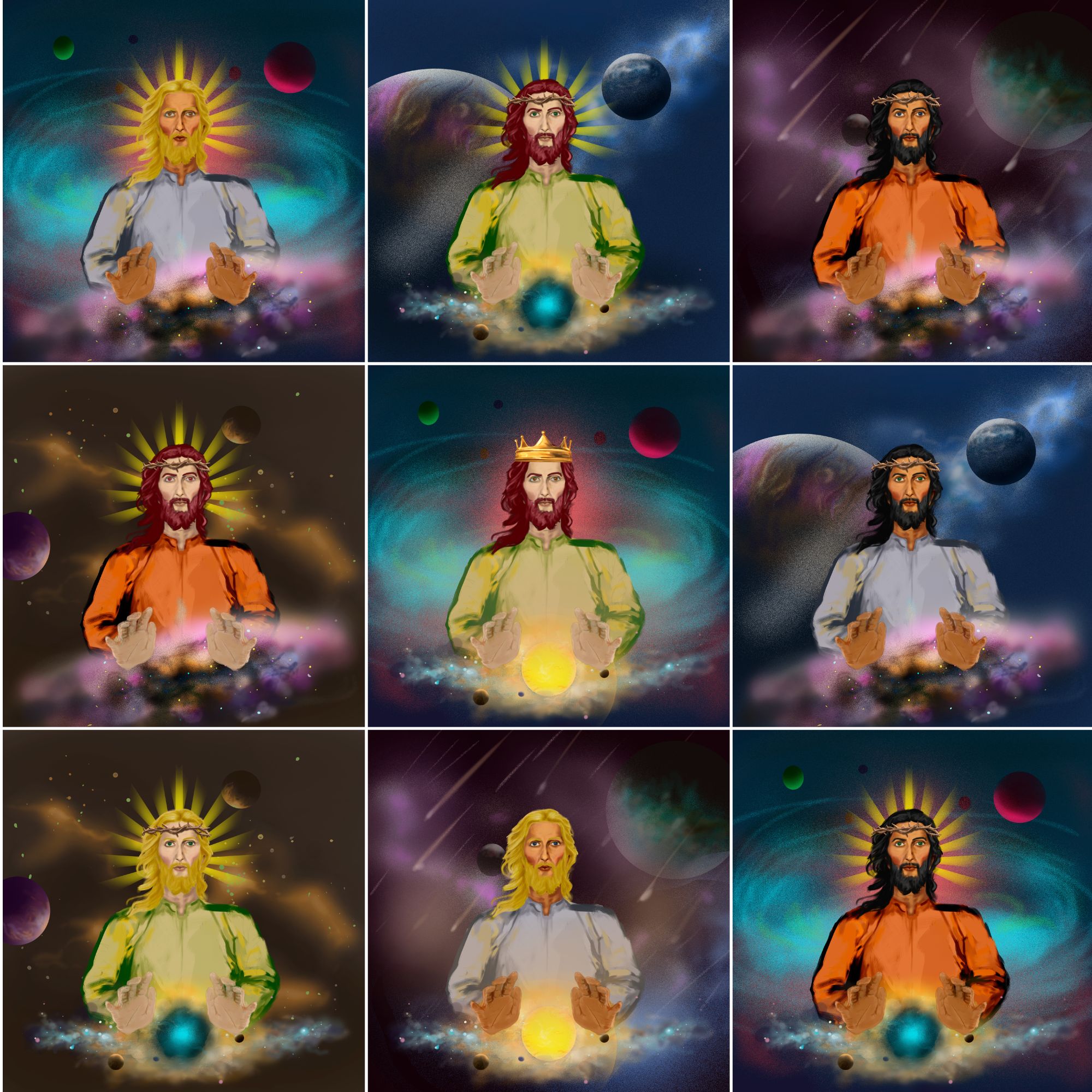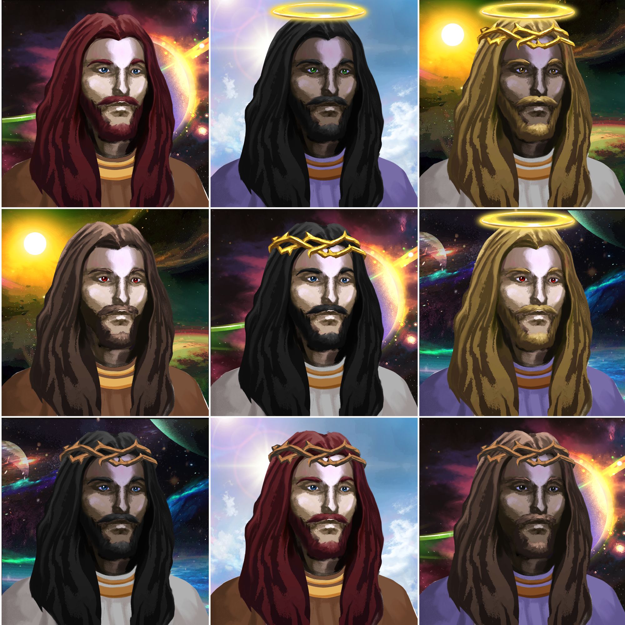 Created in a range of styles by an exciting collective of acclaimed Christian artists around the world, each Glory of Futuristic Christ painting will feature 77 unique variations, for a total of 7,777 Futuristic Christ NFTs that make up our highly exclusive artwork collection!