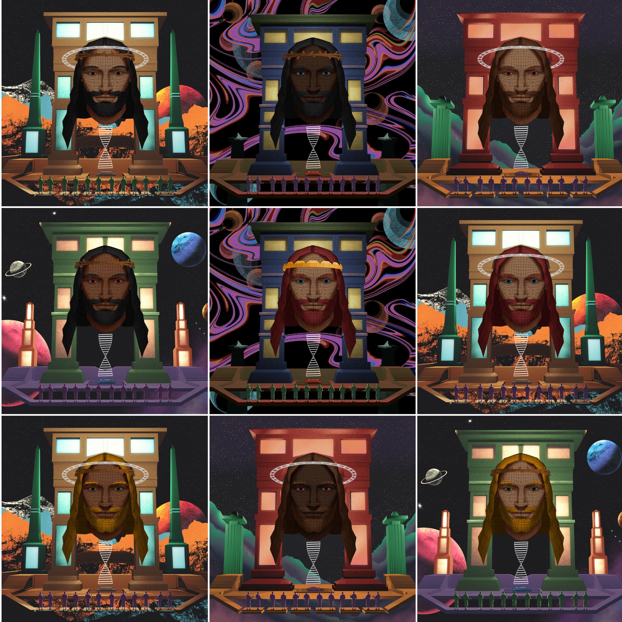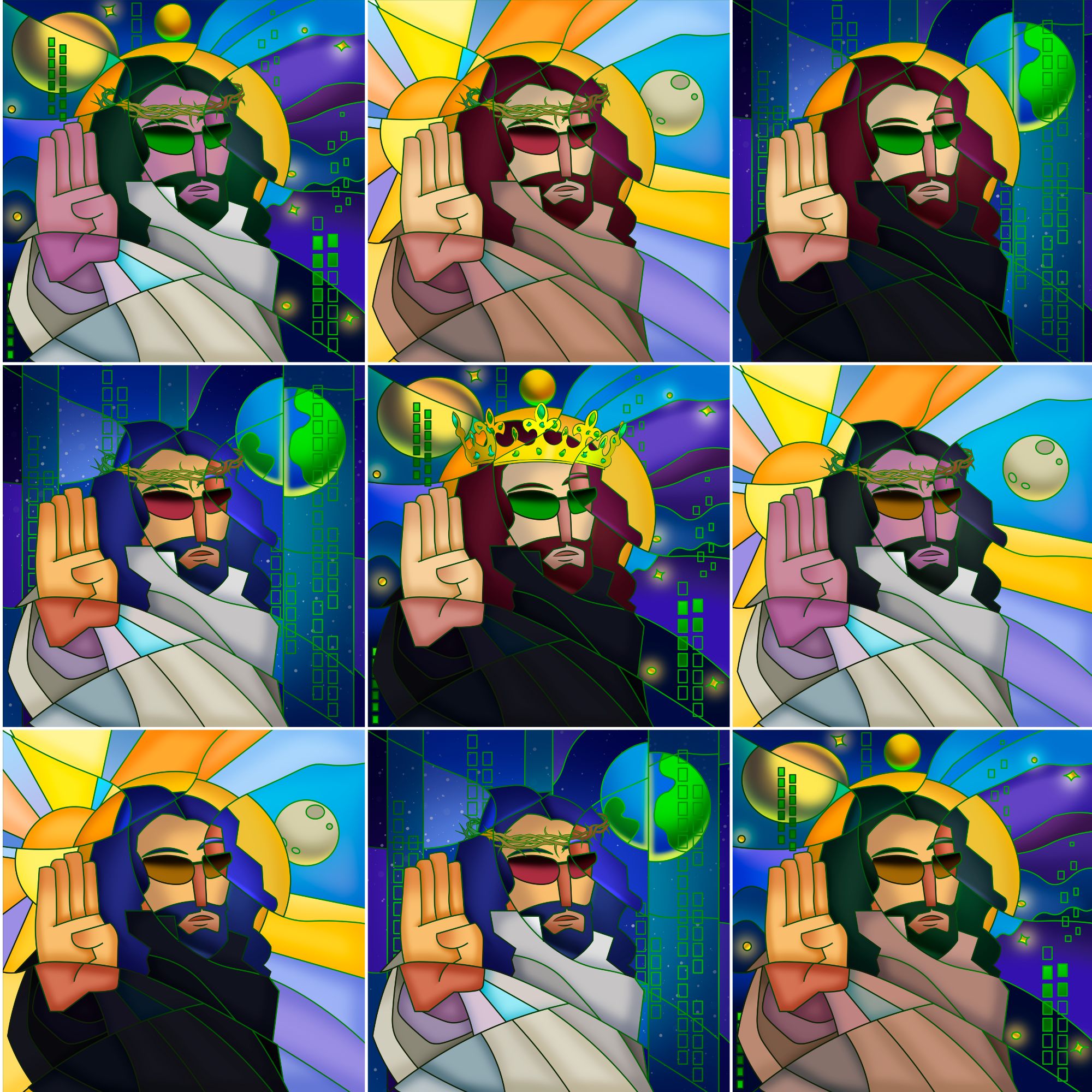 “The Glory of Futuristic Christ NFTs” is a The Global Architect Institute's premier project as we use digital artworks and Web3 technology to explore the potential forms Jesus may take when arriving back to a modern world driven by data and decentralization.The Glory of Futuristic Christ features 100 original, hand-crafted paintings of Jesus in a stunning array of modern forms.